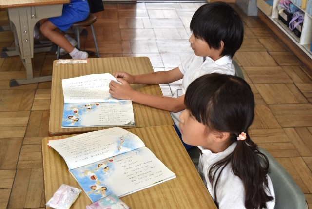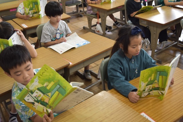 1年生が国語「くじらぐも」で読む学習。