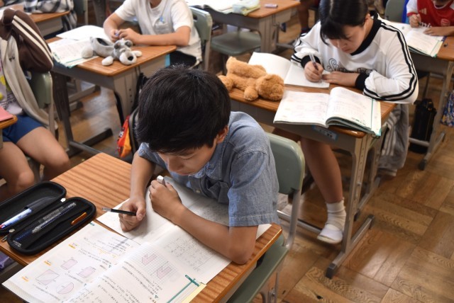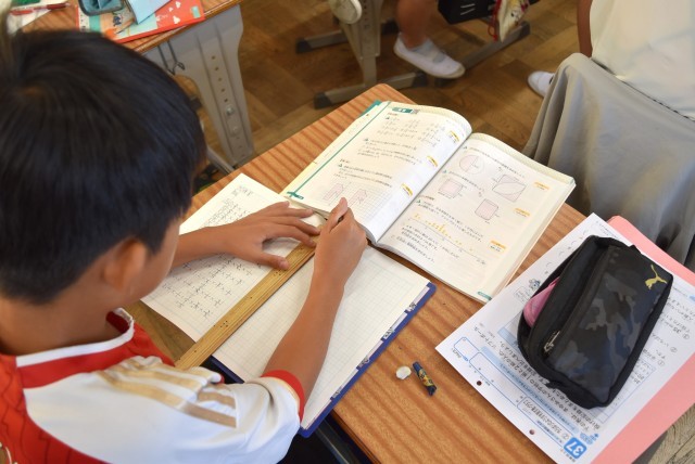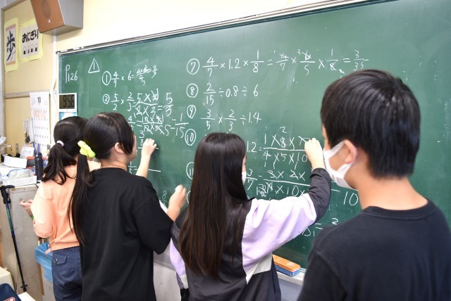 6年生が算数で分数の計算や図形のまとめ。