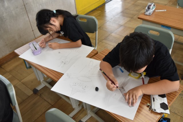 3年生が国語図工「ことばから思いうかべて」の制作。