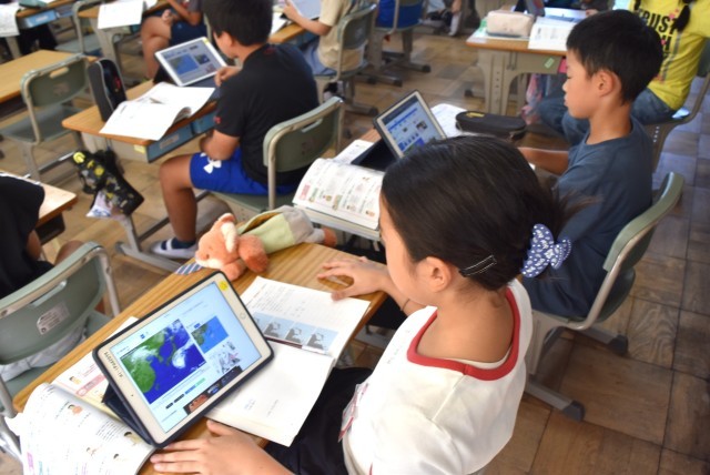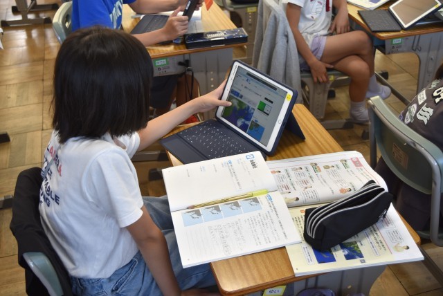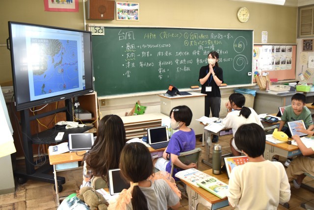 5年生が理科「台風接近」の学習。