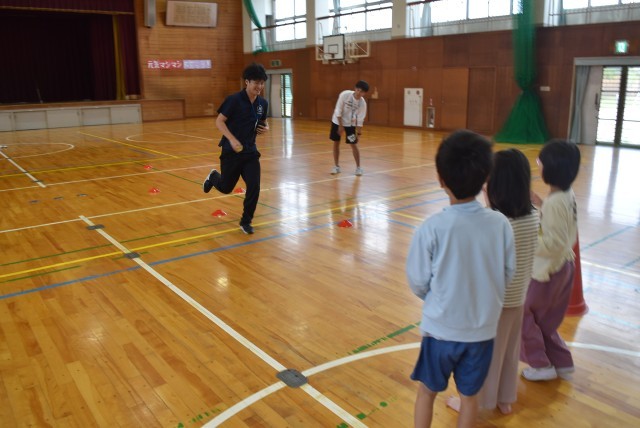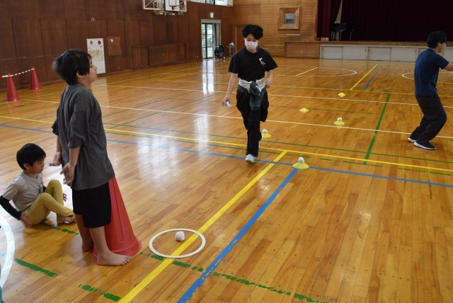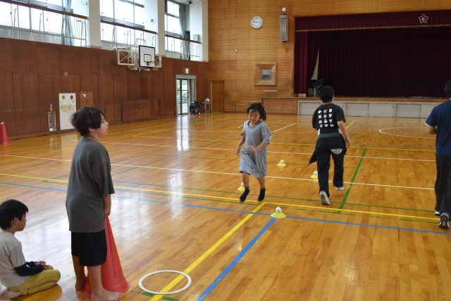 ポイントにある玉をひたすらリングへ運ぶリレーです。