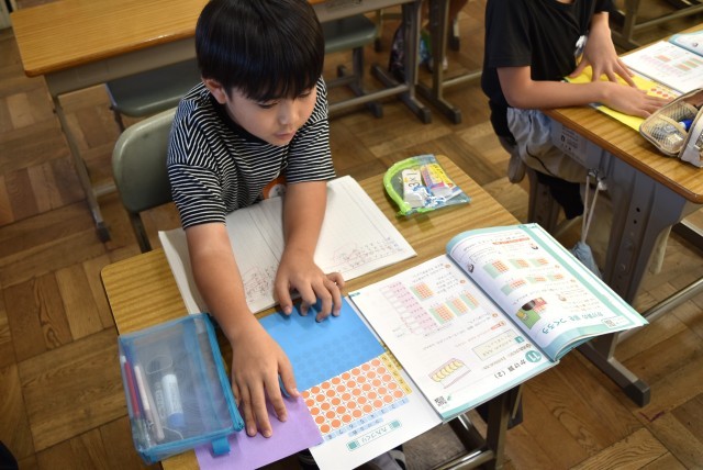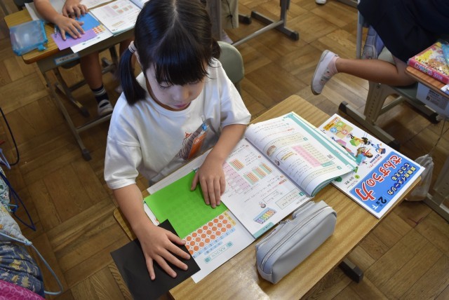 2年生が算数で「かけ算を図にしよう」の学習。