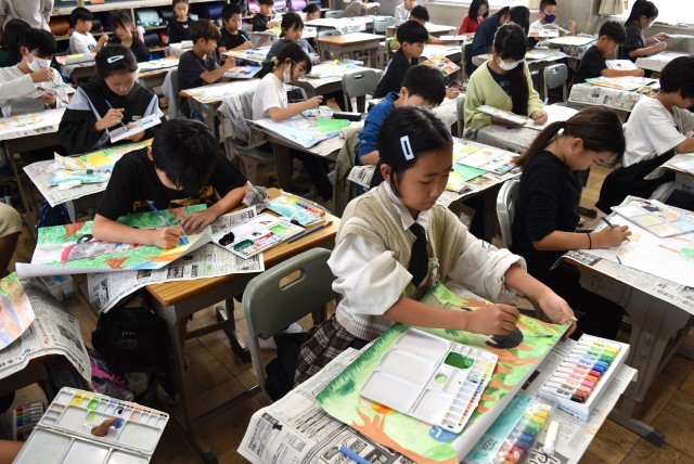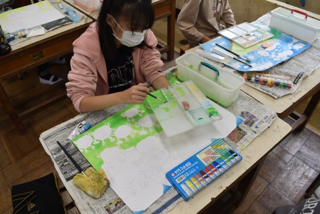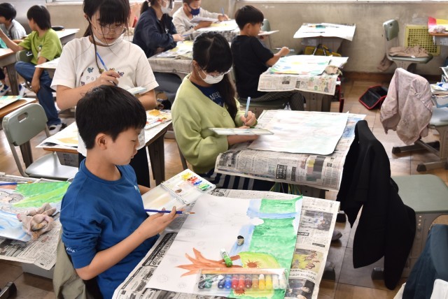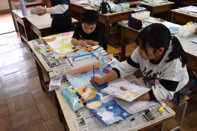 薄く塗った水彩色に濃淡をつけて立体感を出したり主役を強調したりします。