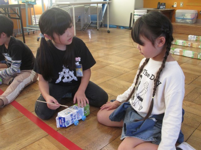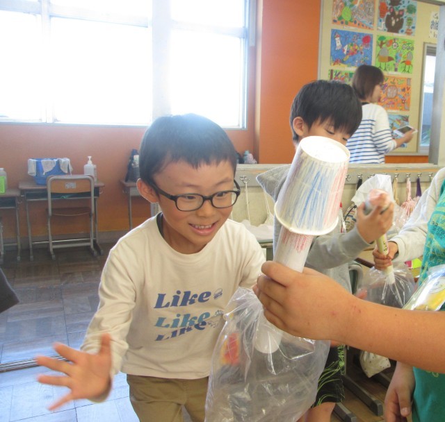 2年生は、生活科の学習で「おもちゃパーティ」を開催し、1年生を招待していました。この日に向けて、つくったおもちゃを改良し、より楽しめるように工夫を重ねてきました。一緒に活動する2年生の表情は、頼れるお兄さんお姉さん。1年生は、今日の「楽しかったこと」「嬉しかったこと」を持ち帰り、来週の「ようこそ年長さんの会」に向けて、自分たちができることを考えるようですよ。