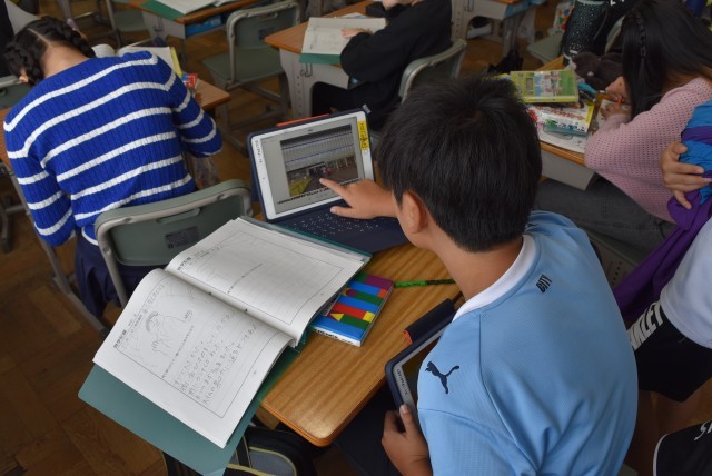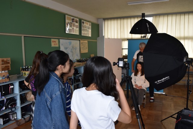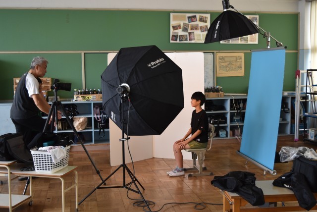 6年生が学級活動で卒業アルバムの個人写真撮影。