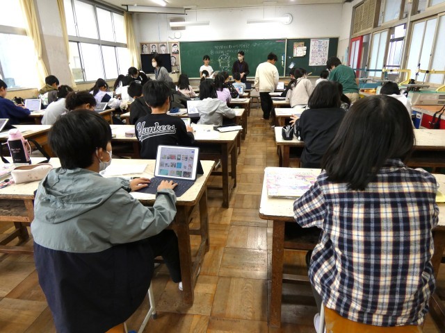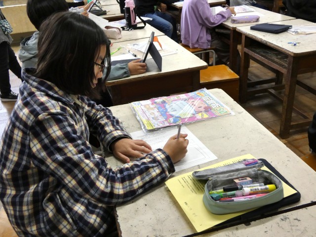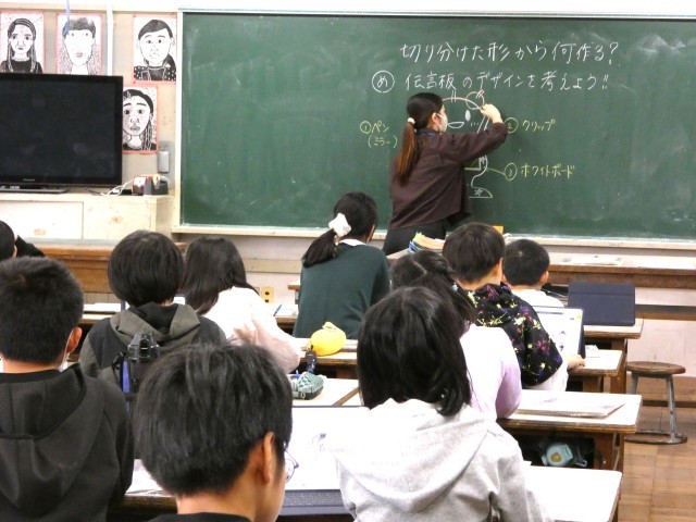 5年生が図工「切り分けた形から何つくる?」の学習。