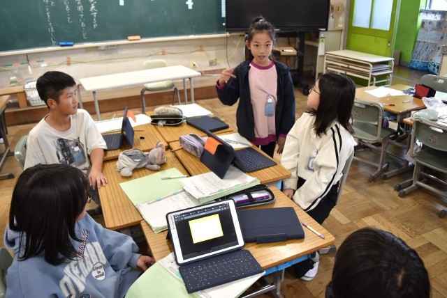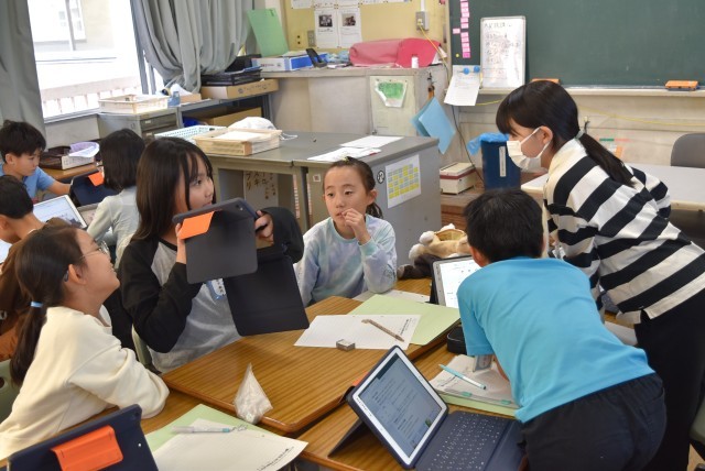 4年生が総合「みんなの幸せ考え隊」の学習。