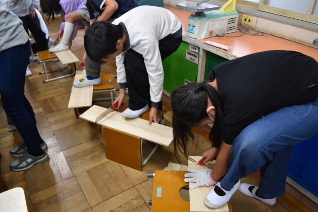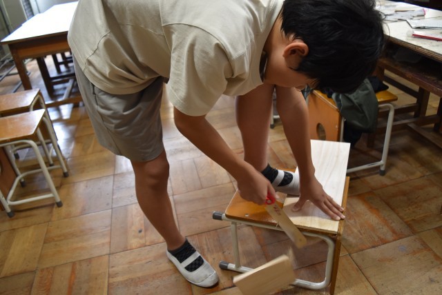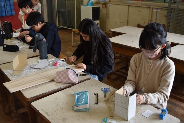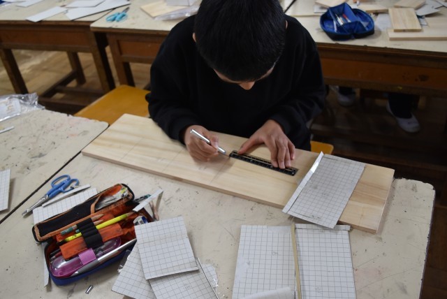 6年生が図工「一枚の板から」の制作。