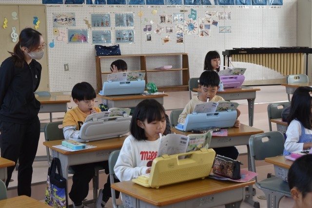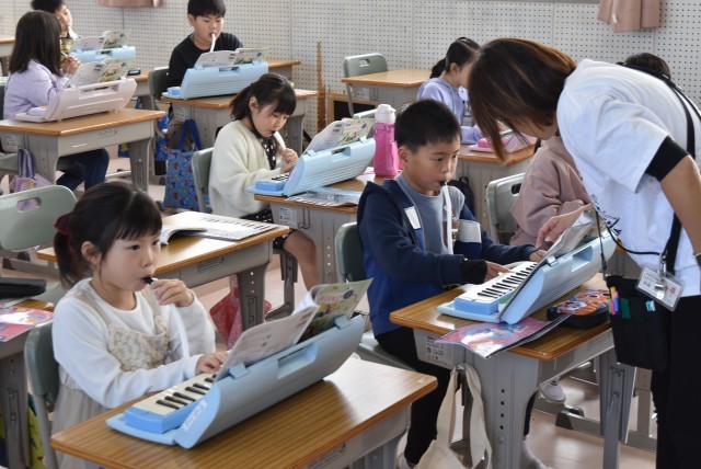 2年生が音楽「こぎつね」で鍵盤ハーモニカの学習。