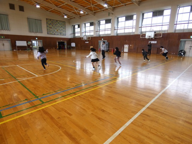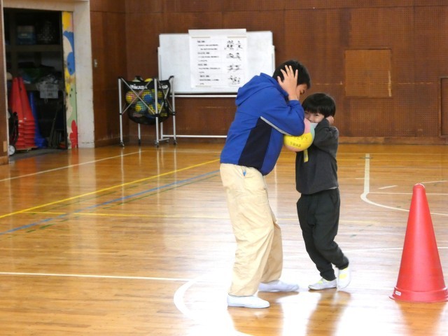 いろいろな姿勢からのスタートダッシュ、友達と一緒にボール運びなど。