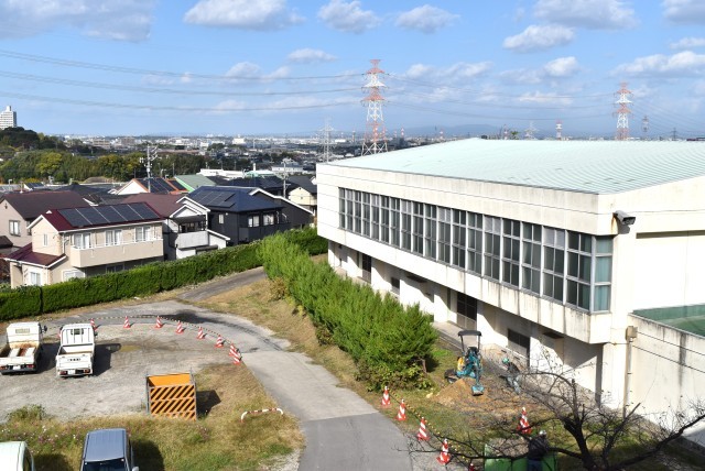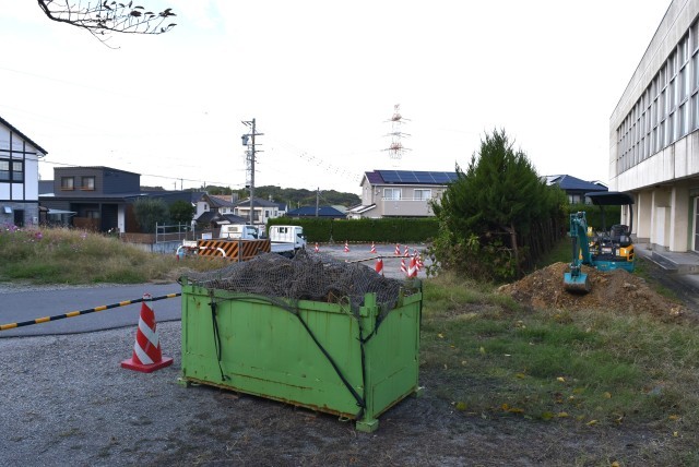 資材置き場や室外機設置場所の整地が進んでいます。