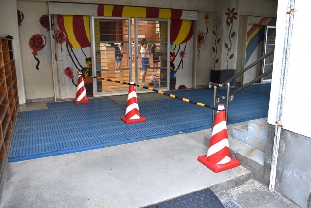 体育館と北館の間から運動場へは通り抜けできません。