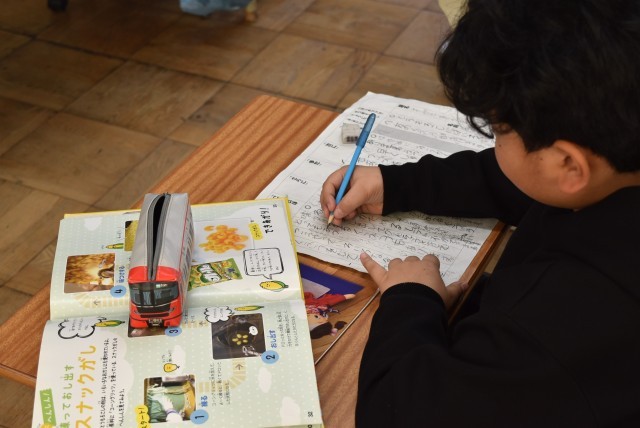 3年生が国語「食べ物の秘密をおしえます」で書く学習。
