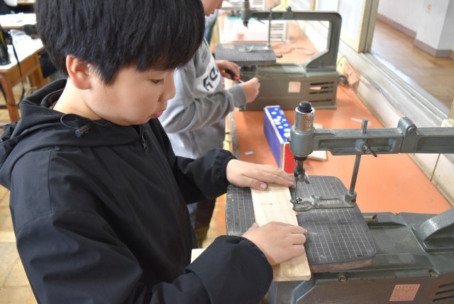 電動糸ノコギリの刃の向きはとがっている方向が下です。