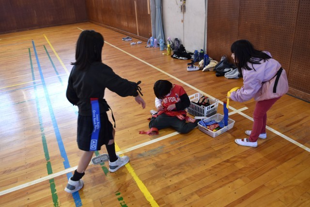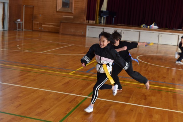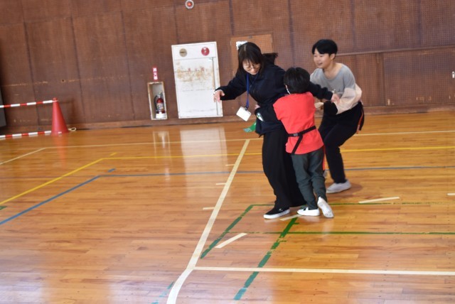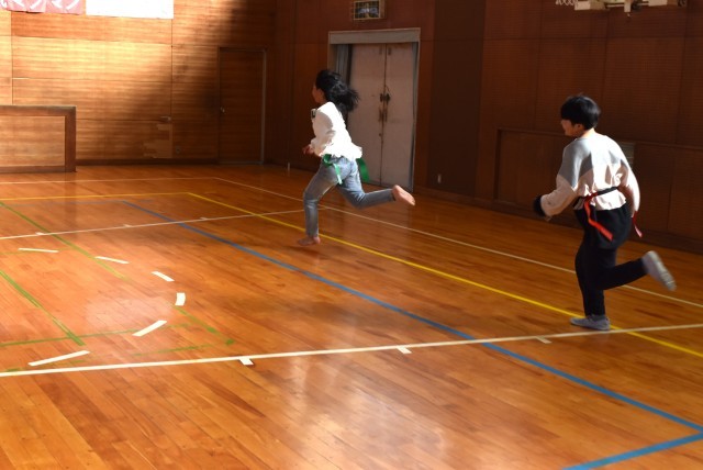 あおぞら学級では体育でしっぽとり。