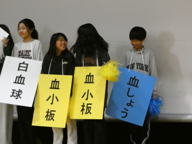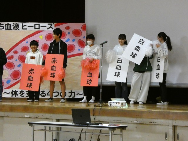 保健委員会の皆さんが、血液の役割について劇にして発表しました。