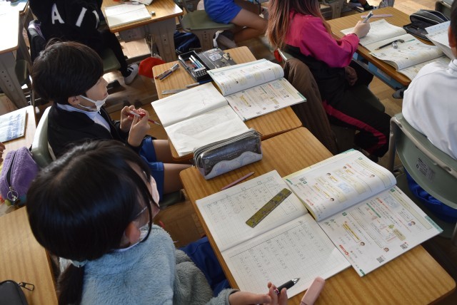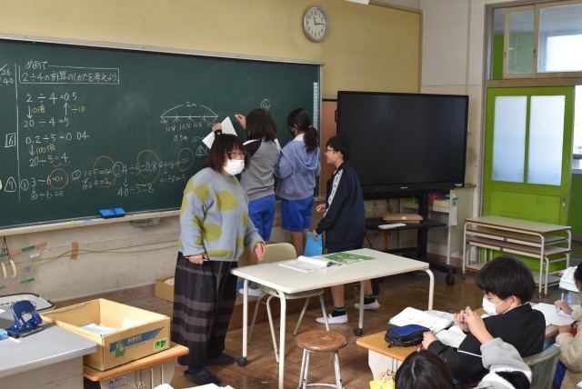 4年生が算数で小数のかけ算わり算の学習。