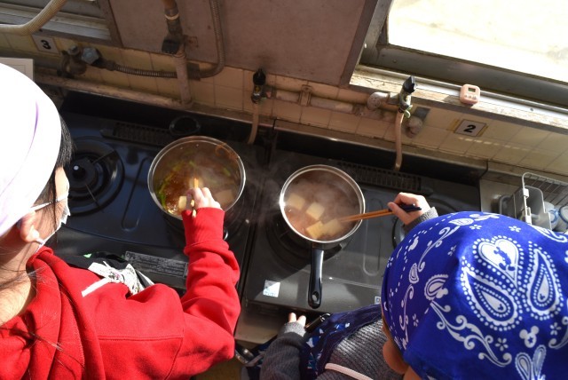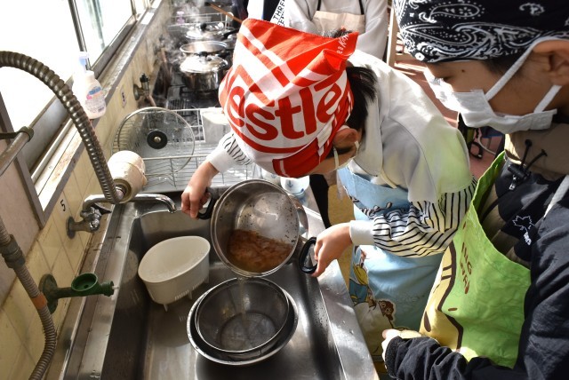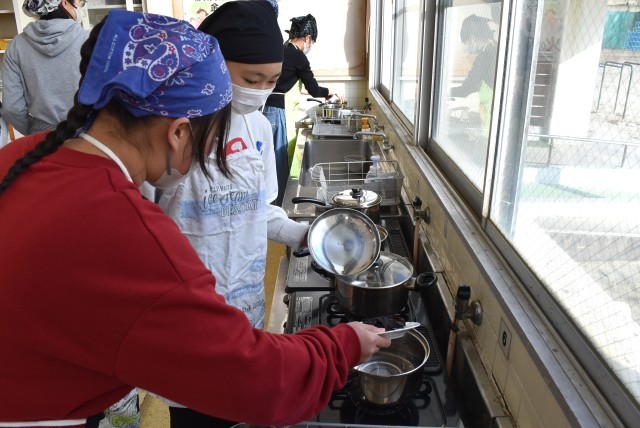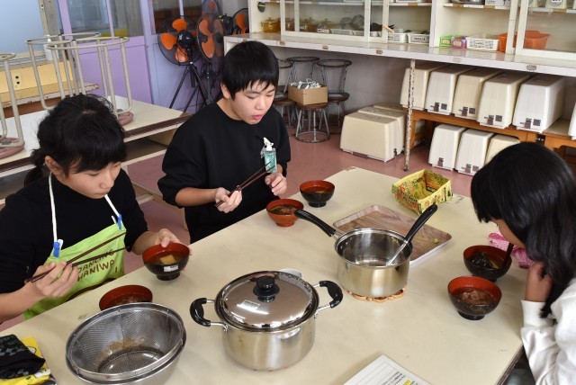 6年生が家庭「出汁(だし)の違いを味わおう」で調理実習。