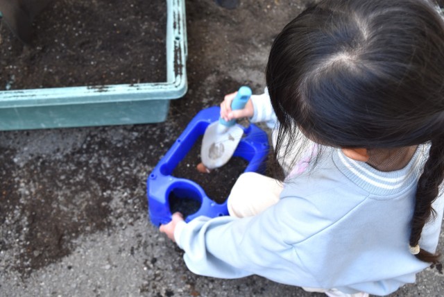 1年生が生活「チューリップをそだてよう」の学習。