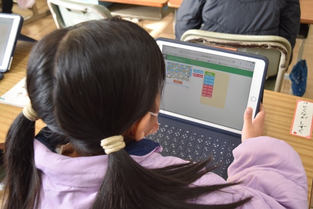 タブレットで「命令」をならべて、アイコンを正しく動かせるかな。