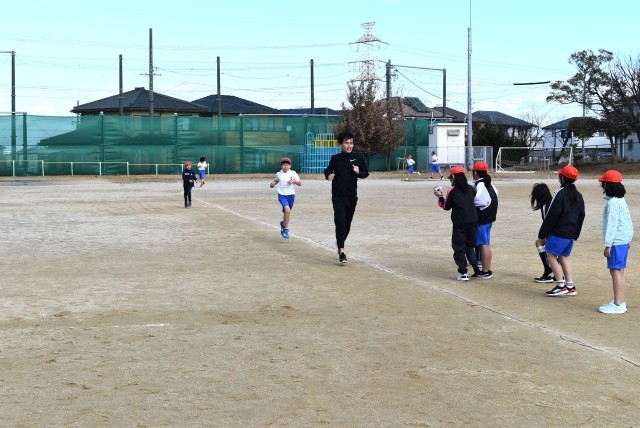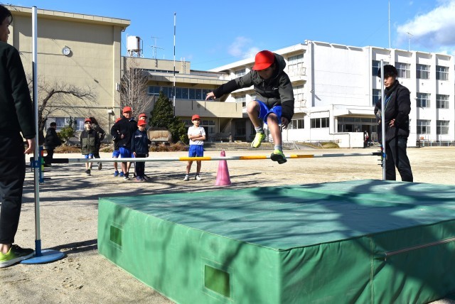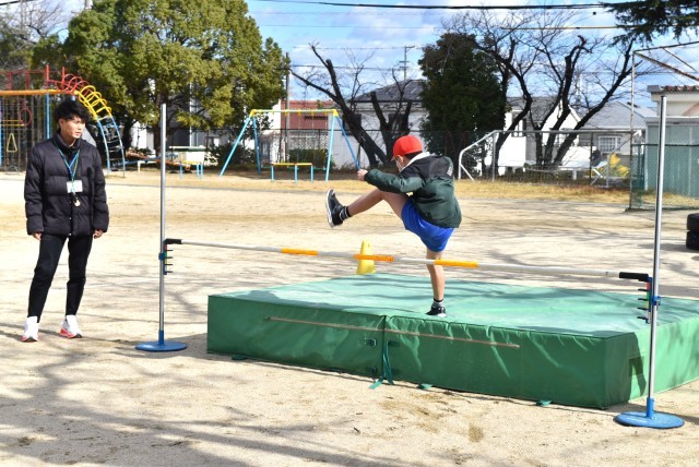 運動場の使用が重なるので、待ち時間に高跳びです。