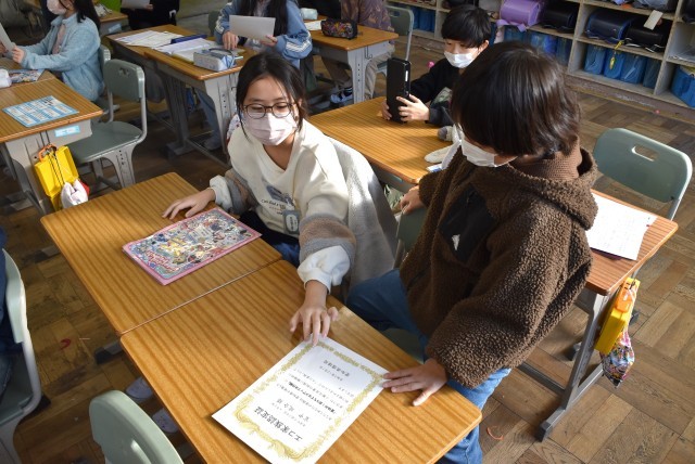 夏休みにチャレンジしたことの認定証が配付されました。