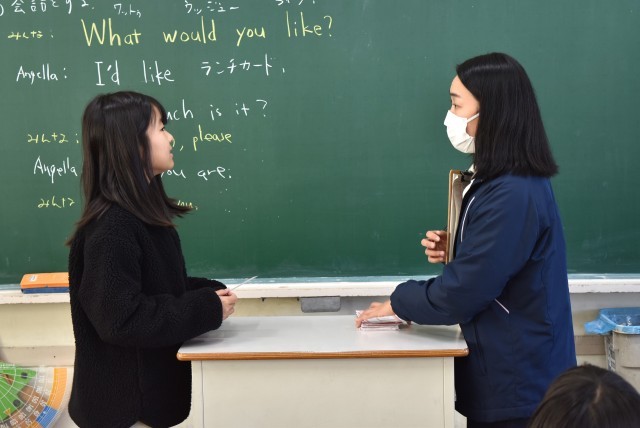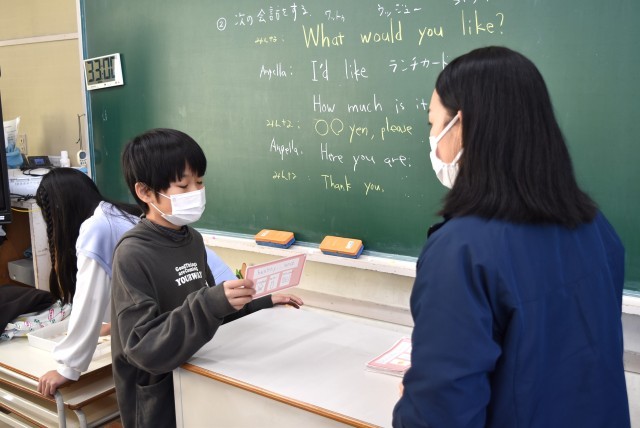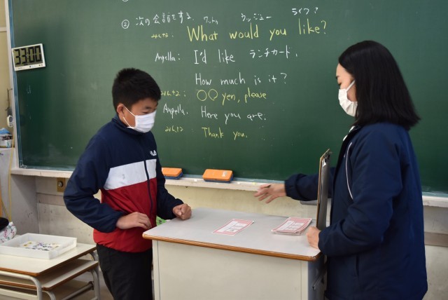 5年生が外国語「特製ランチをプレゼントしよう」の学習。