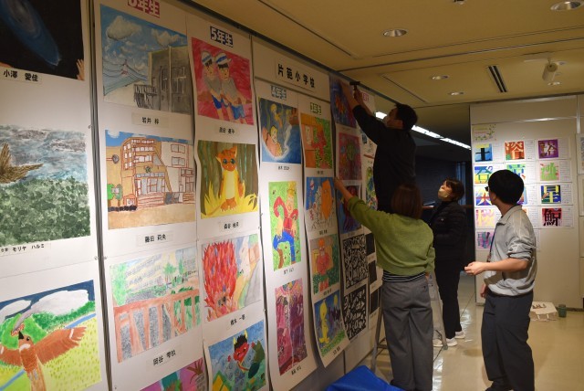 小学校1年生から中学校3年生までの各校代表作がならびました。