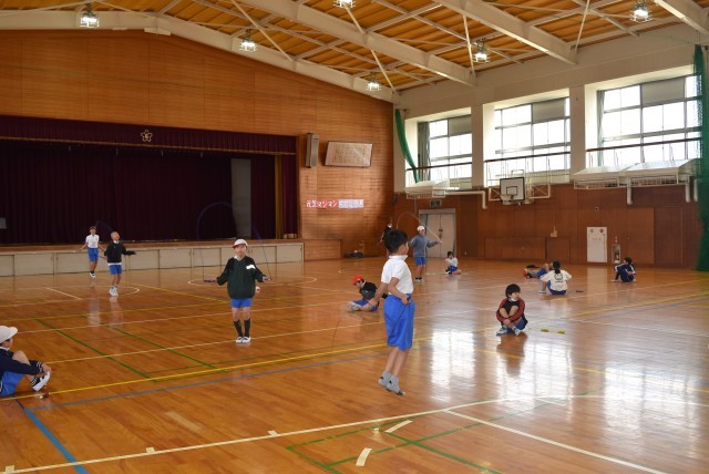 4年生が体育でなわとびの学習。