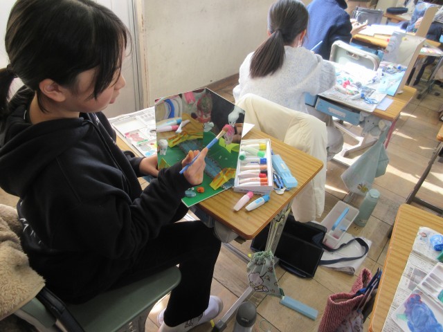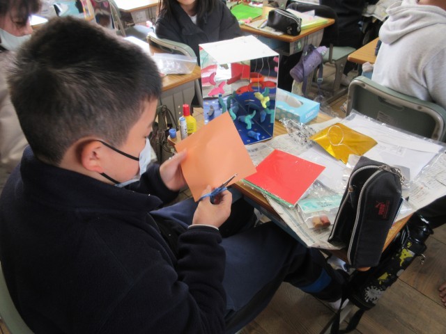 5年生が「ミラクル!ミラーワールド」の作成に取り組んでいます。