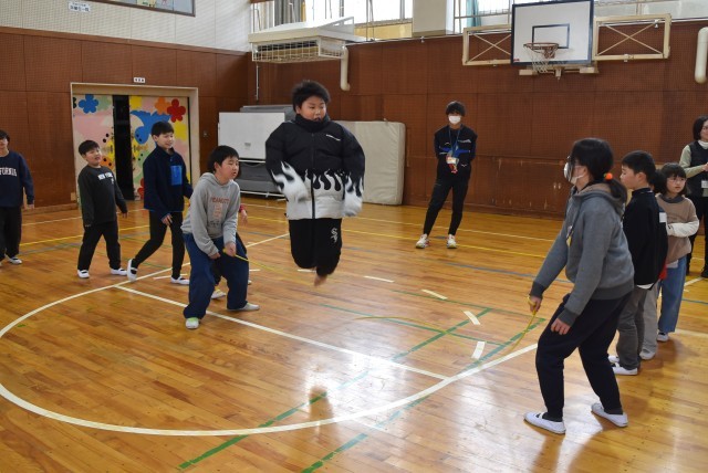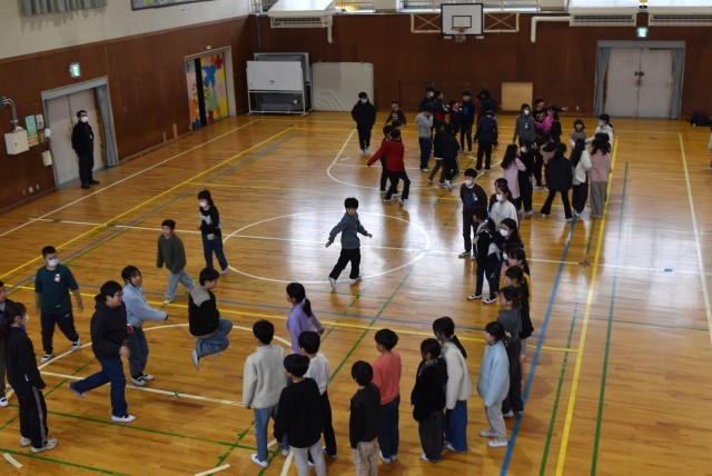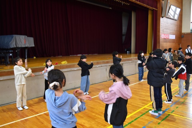 2月10日(火)背中をおす 公開日 2026/02/10 更新日 2026/02/10 5年生 5年生が学活で3年生とペアなわとび。大勢があつまると見えない集団の力を感じます。タイミングをみて3年生の背中をそっと手で押す5年生。「今」や「はい」とかけ声で押す5年生。優しい5年生と3年生の元気がよくマッチしています。体育館の2階(キャットウォーク)にはエアコンの支えにつまずかないように鉄板が敷かれていました。 +3 お知らせ 1年生 2年生 3年生 4年生 5年生 6年生 PTA 学校行事 給食