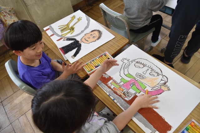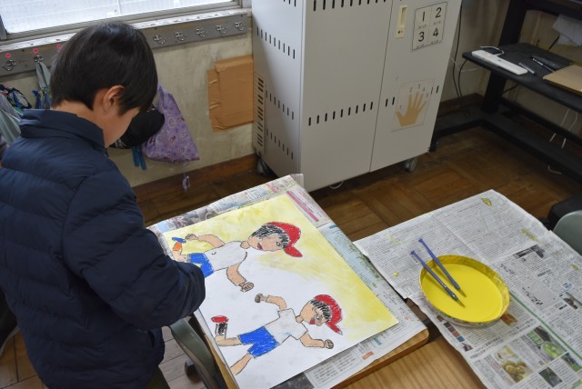 1年生が図工「先生あのね」の制作。