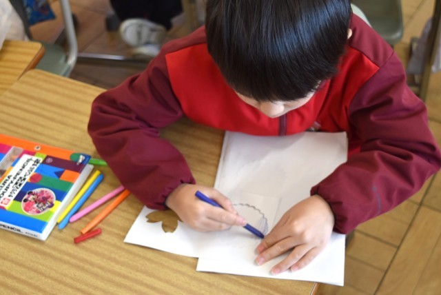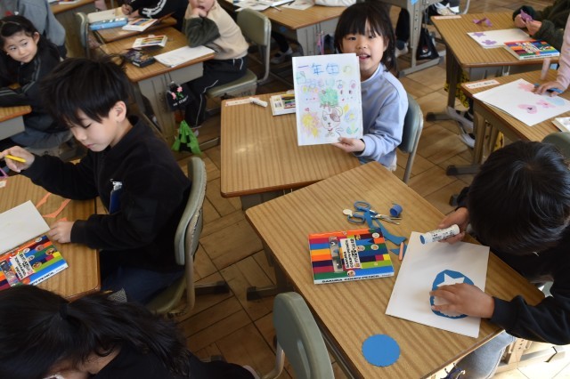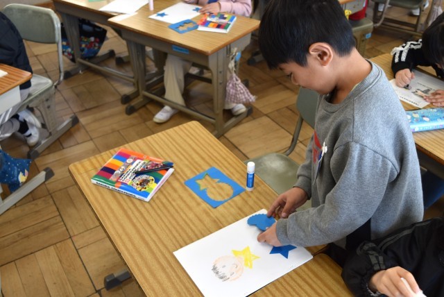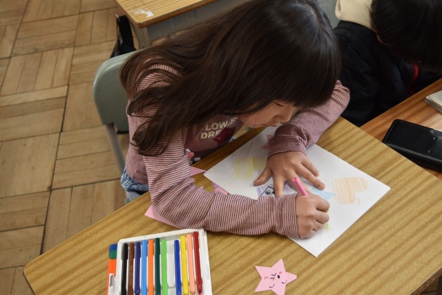 1年生が国語・図工「一年のふりかえり」の学習。