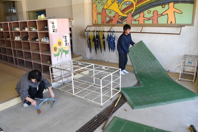 片葩小学校のために黙々と作業をしてくれました。