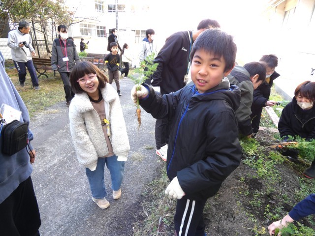 あおぞら学級が、野菜の収穫をしました。