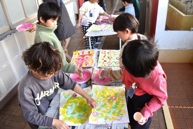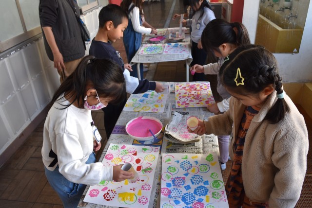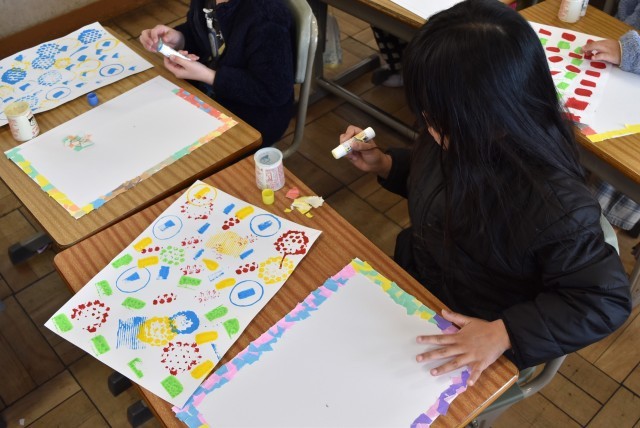 1年生が図工「花をかざろう」の制作。