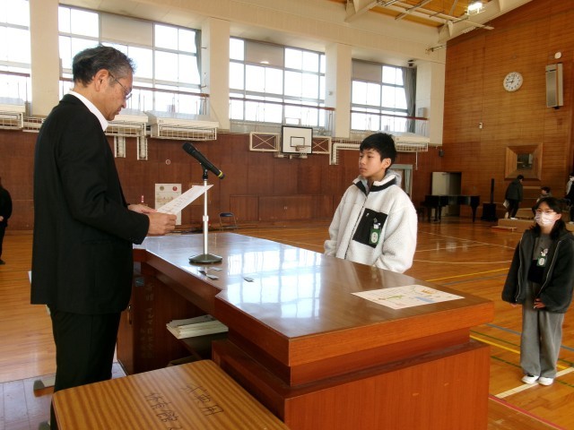 人権作品、なわとびチャレンジの表彰をしました。