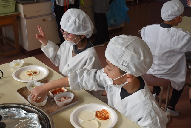 ピザづくりをしていました。