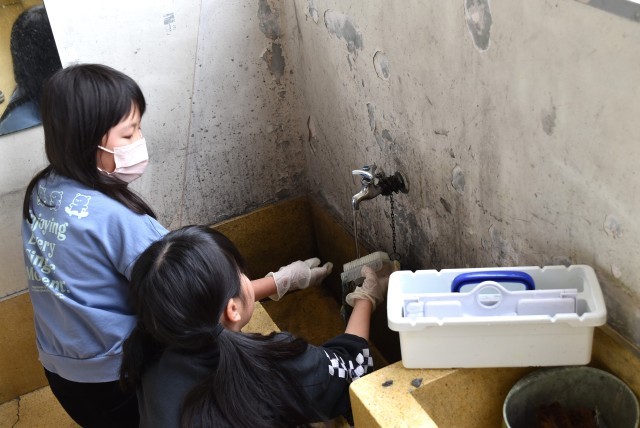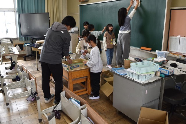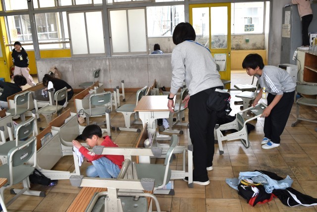 日頃よく使う教室、廊下、机、黒板などきれいに整えました。
