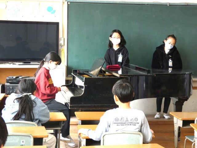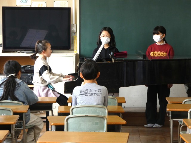 4年生のお楽しみ会で、ピアノの演奏を発表している時間でした。