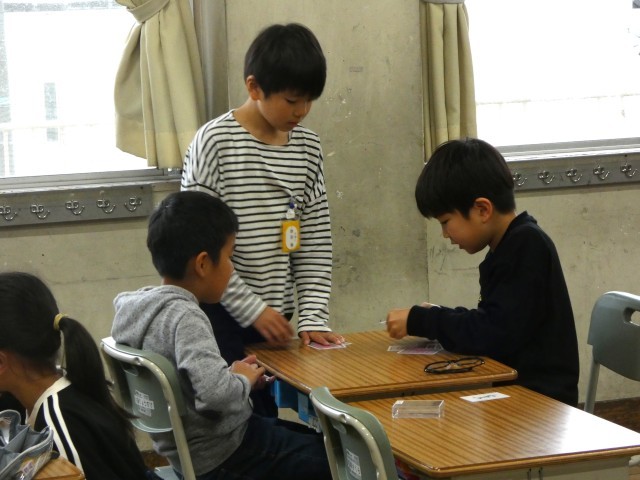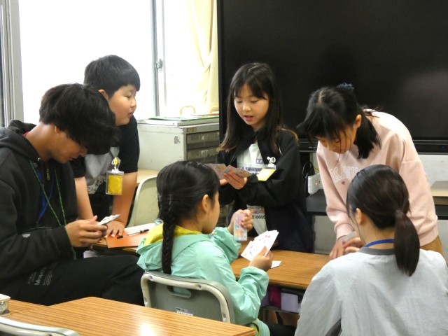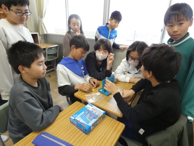 教室をのぞくと、四目並べやトランプで盛り上がっていました。