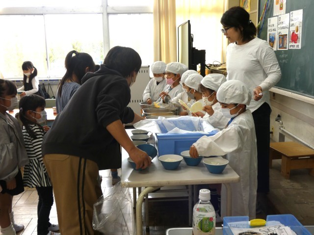 先生の話をよく聞いて、上手に配膳できました。