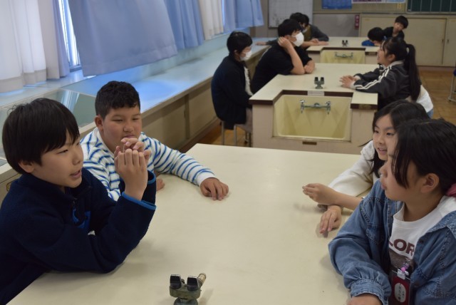 理科の言葉を使って表現できるように、お互いの考えを聞き合いましょう。