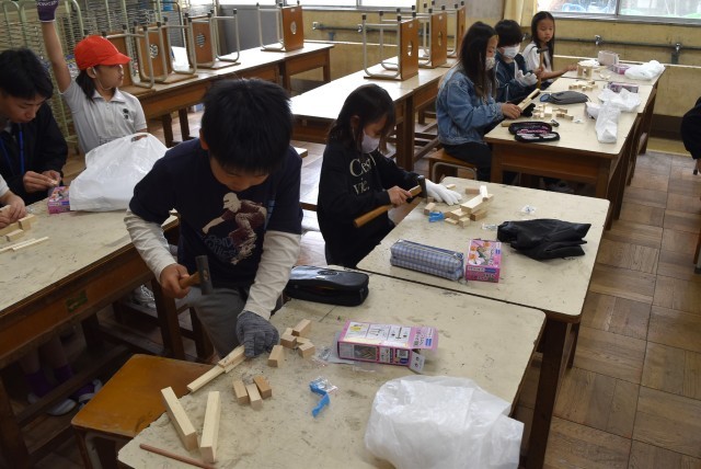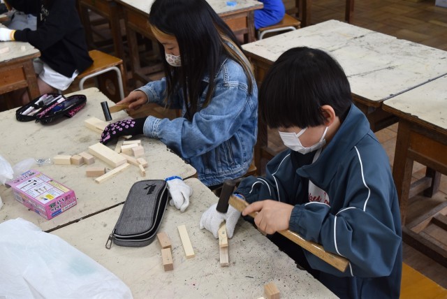 3年生が図工「トントンどんどん くぎうって」の制作。