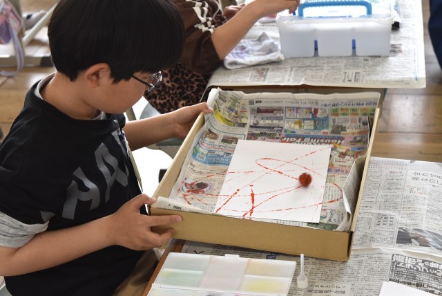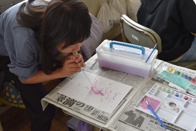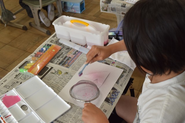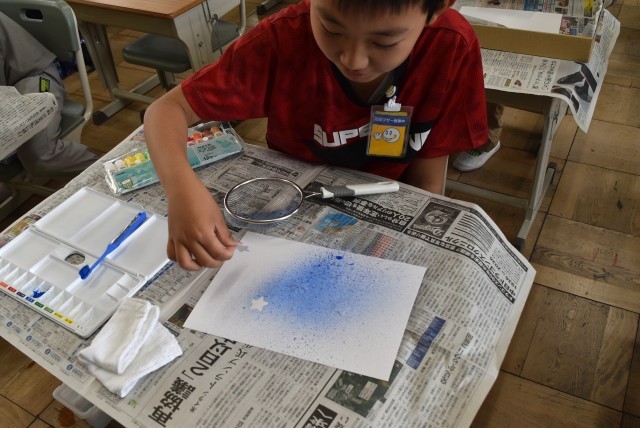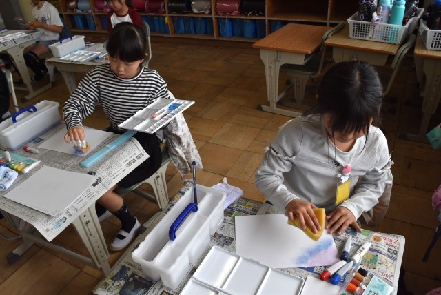 4年生が図工「絵の具でゆめもよう」の制作。