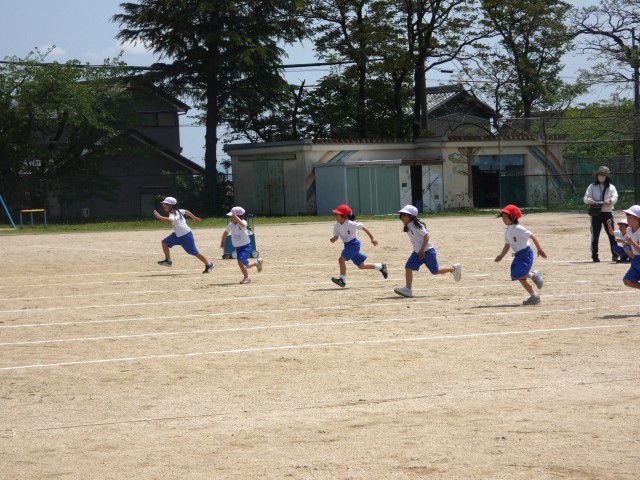 1年生が体育で「徒競走」の学習。
