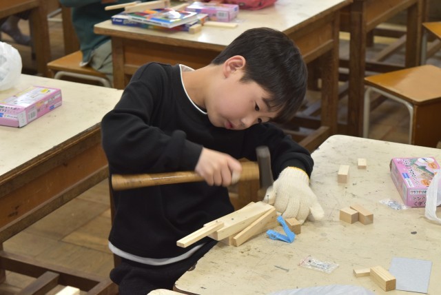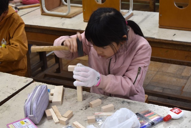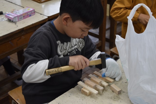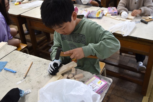 3年生が図工「トントンどんどんくぎうって」の制作。