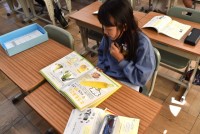 3年生は、祭りびとの思いを感じるために太鼓の体験もしました。