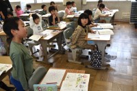 2年生がタブレット端末を使った学習。