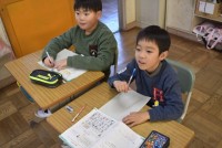 2年生が国語・書写「年賀状をかこう」で年賀状の清書。お世話になった人に年賀状を送...